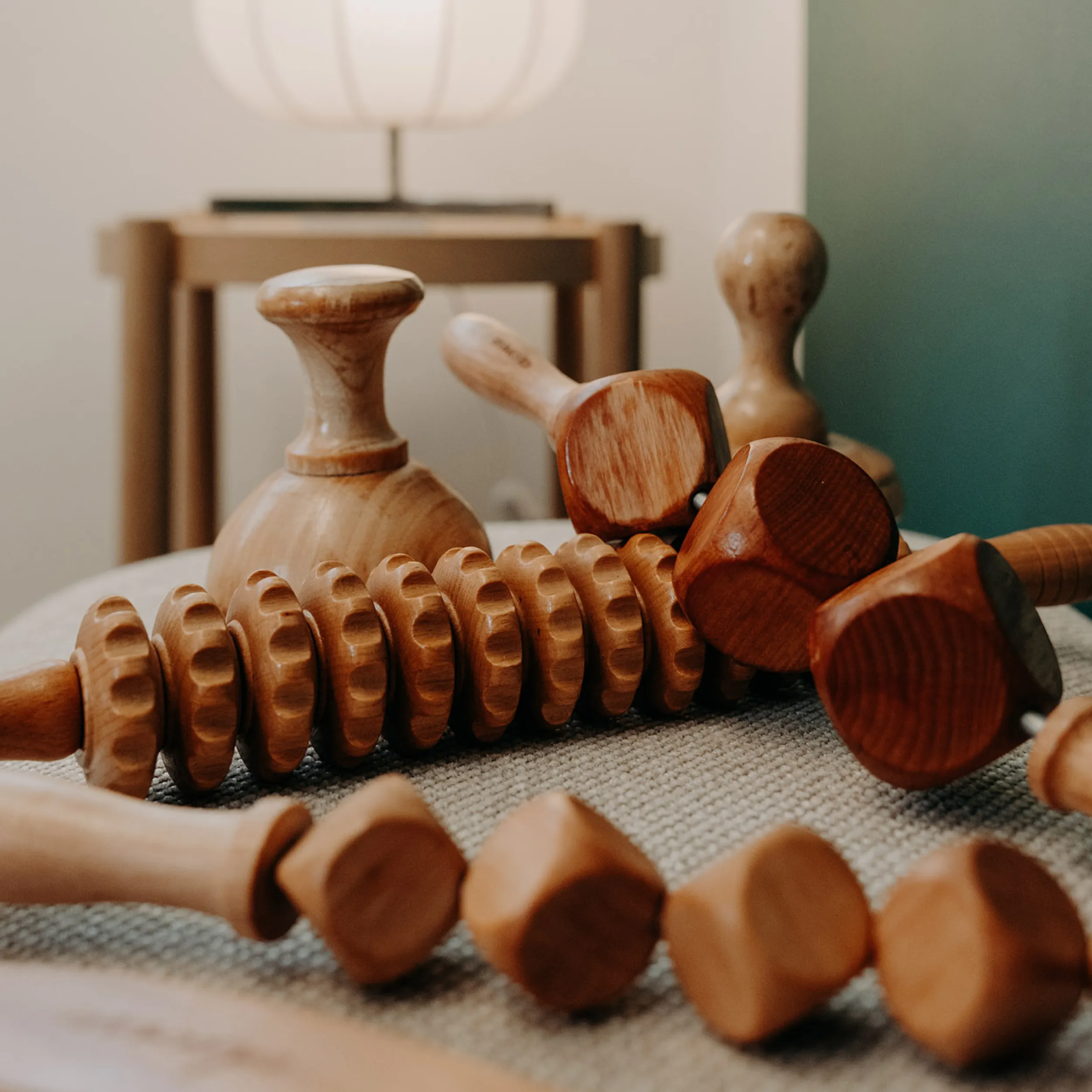 Rouleaux striés, spatules, rouleau à cubes, champignons et ventouses en bois sont utilisés selon vos besoins.