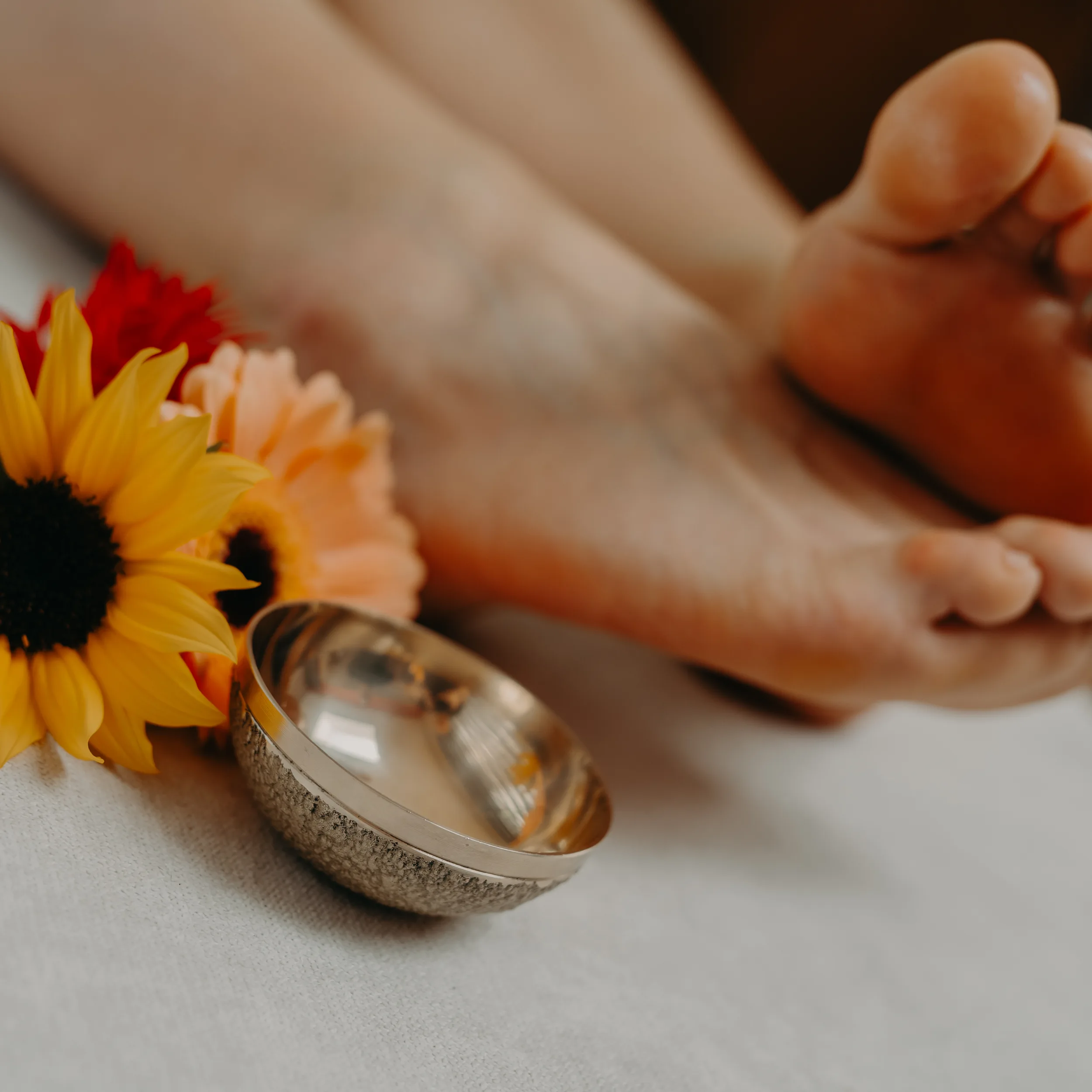 Ce moment permet d’échanger sur vos attentes, vos éventuelles précautions et les contre-indications. La séance débute par un bain de pieds revitalisant :