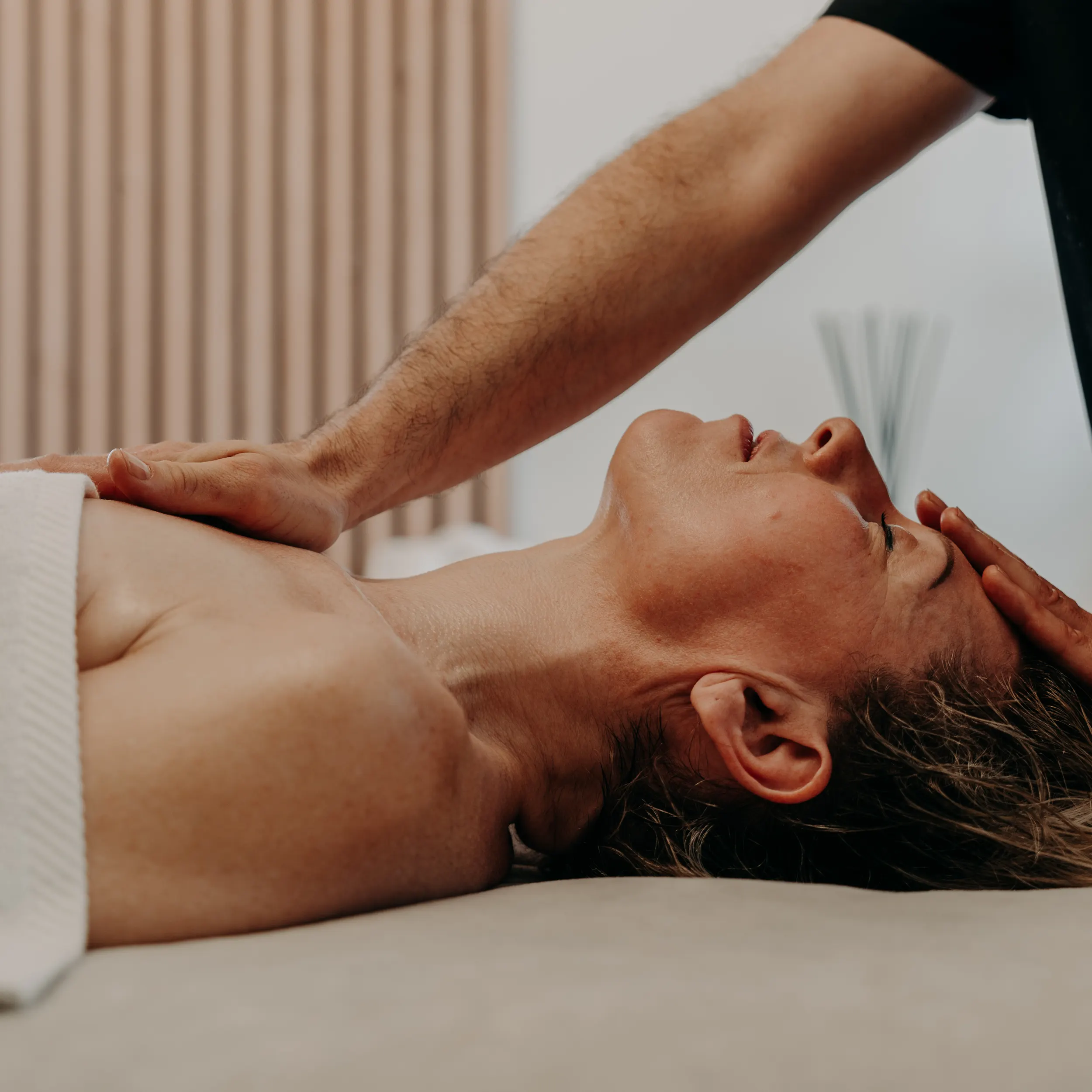 Installation sur une table confortable, dans une atmosphère douce et apaisante, afin de favoriser un lâcher-prise total dès les premières minutes.